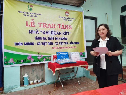 Chi hội Nữ Doanh nhân thị xã Việt Yên được khen về thành tích xoá nhà dột nát cho hộ nghèo